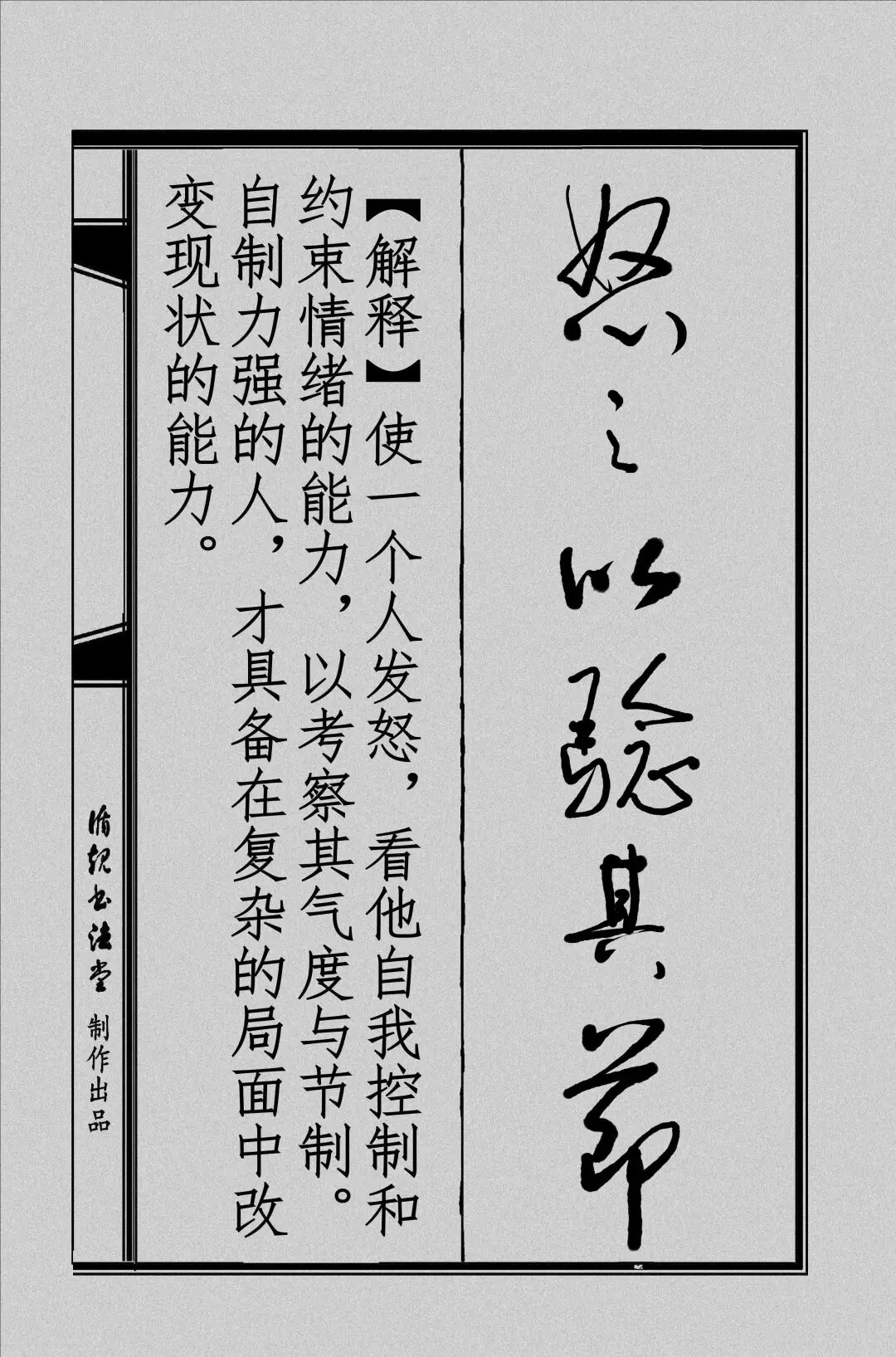 使一个人发怒,看他自我控制和约束情绪的能力,以考察其气度与节制。自制力强的人,才具备在复杂的局面中改变现状的能力。