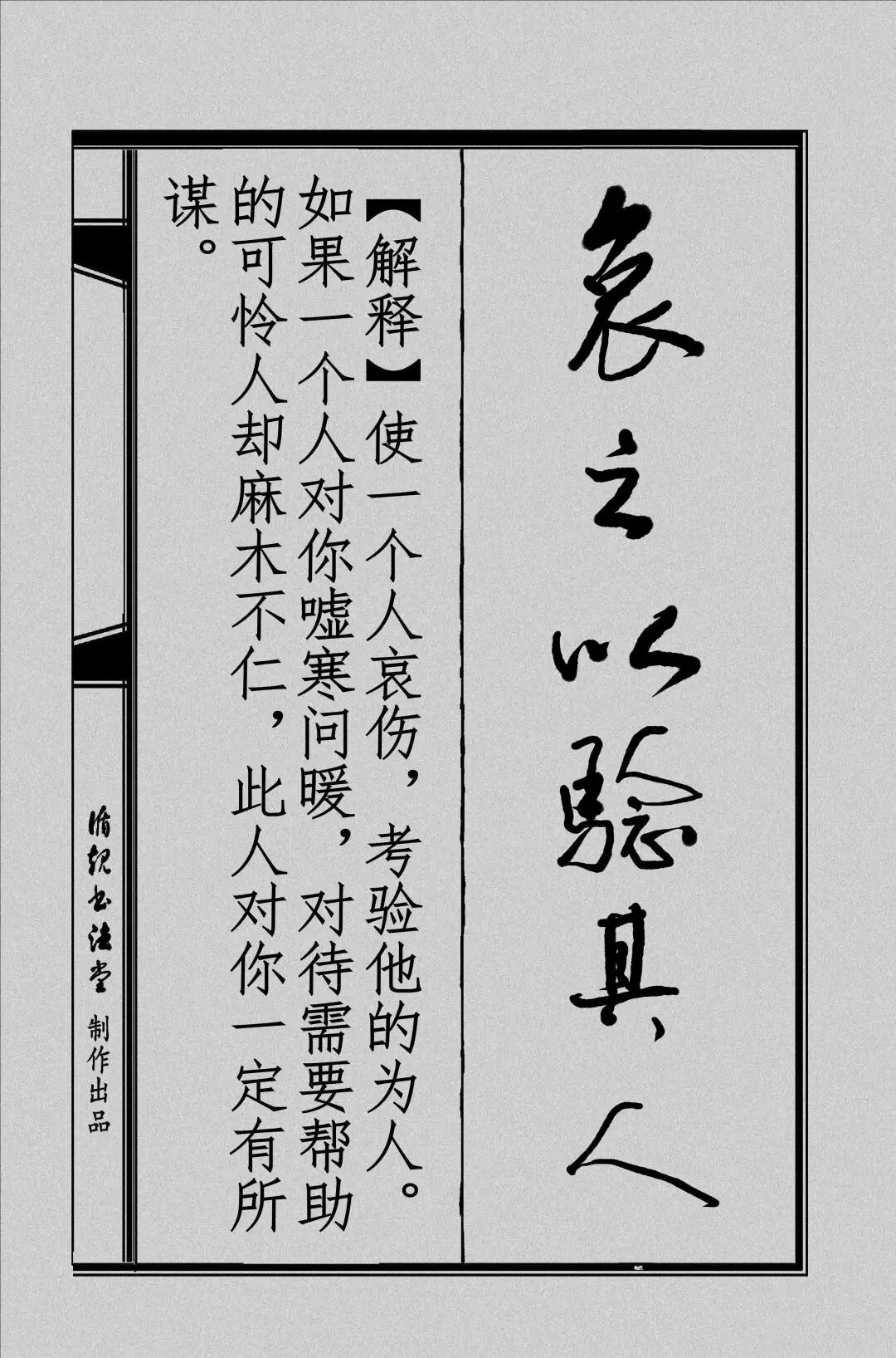 使一个人哀伤,考验他的为人。如果一个人对你嘘寒问暖,对待需要帮助的可怜人却麻木不仁,此人对你一定有所谋。