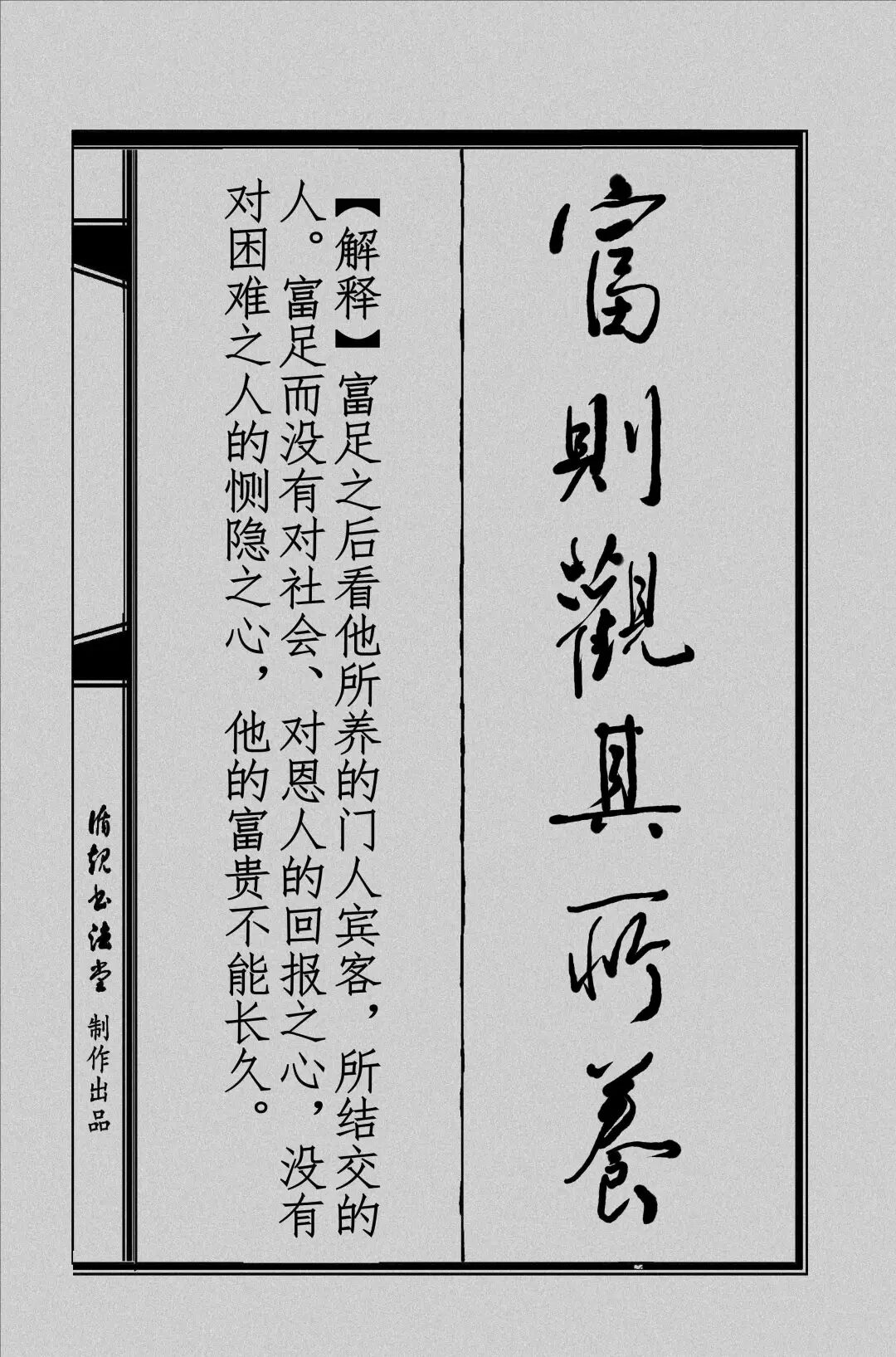富足之后看他所养的门人宾客,所结交的人。富足而没有对社会、对恩人的回报之心,没有对困难之人的恻隐之心,他的富贵不能长久。