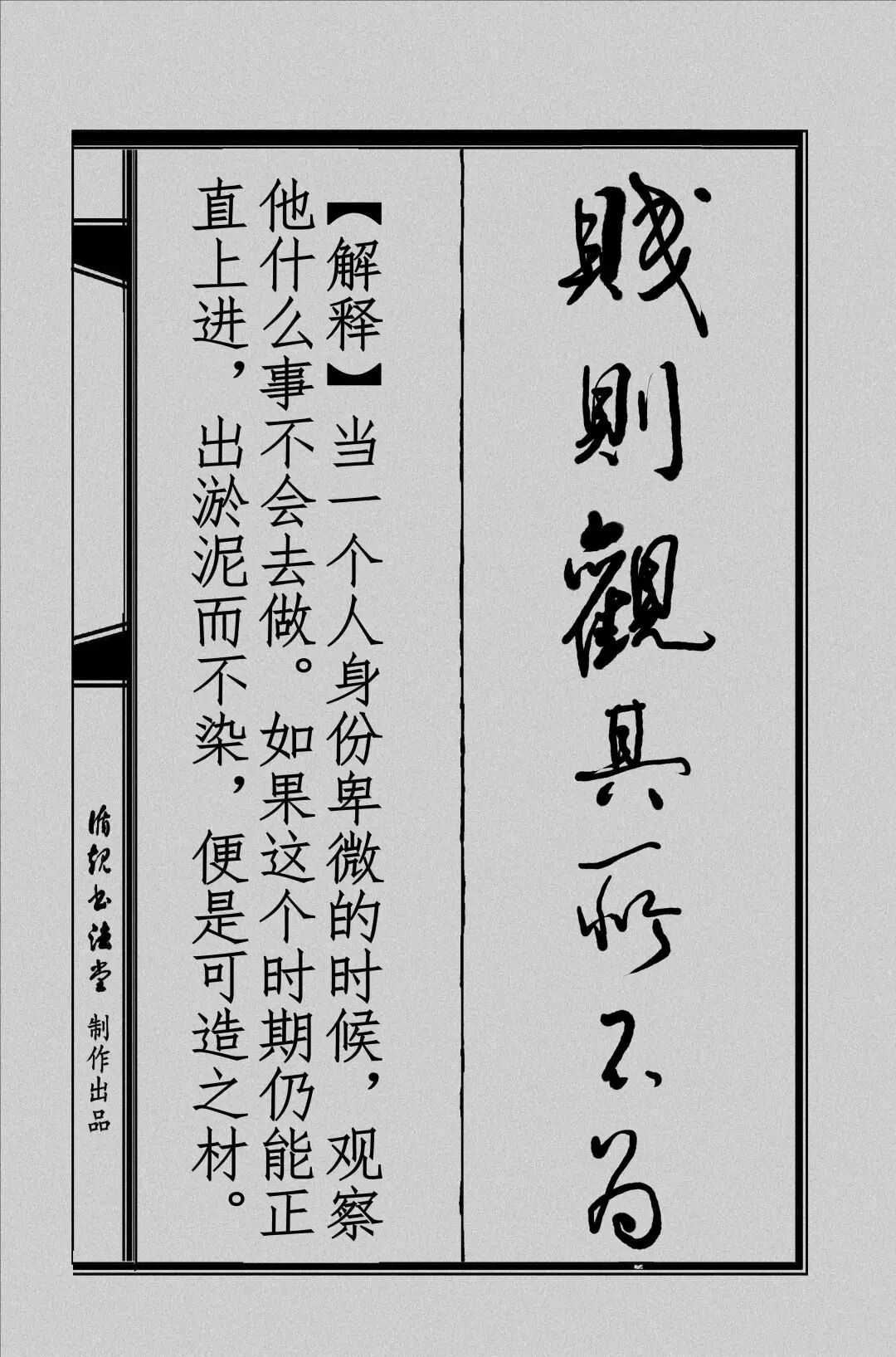 当一个人身份卑微的时候,观察他什么事不会去做。如果这个时期仍能正直上进,出淤泥而不染,便是可造之材。