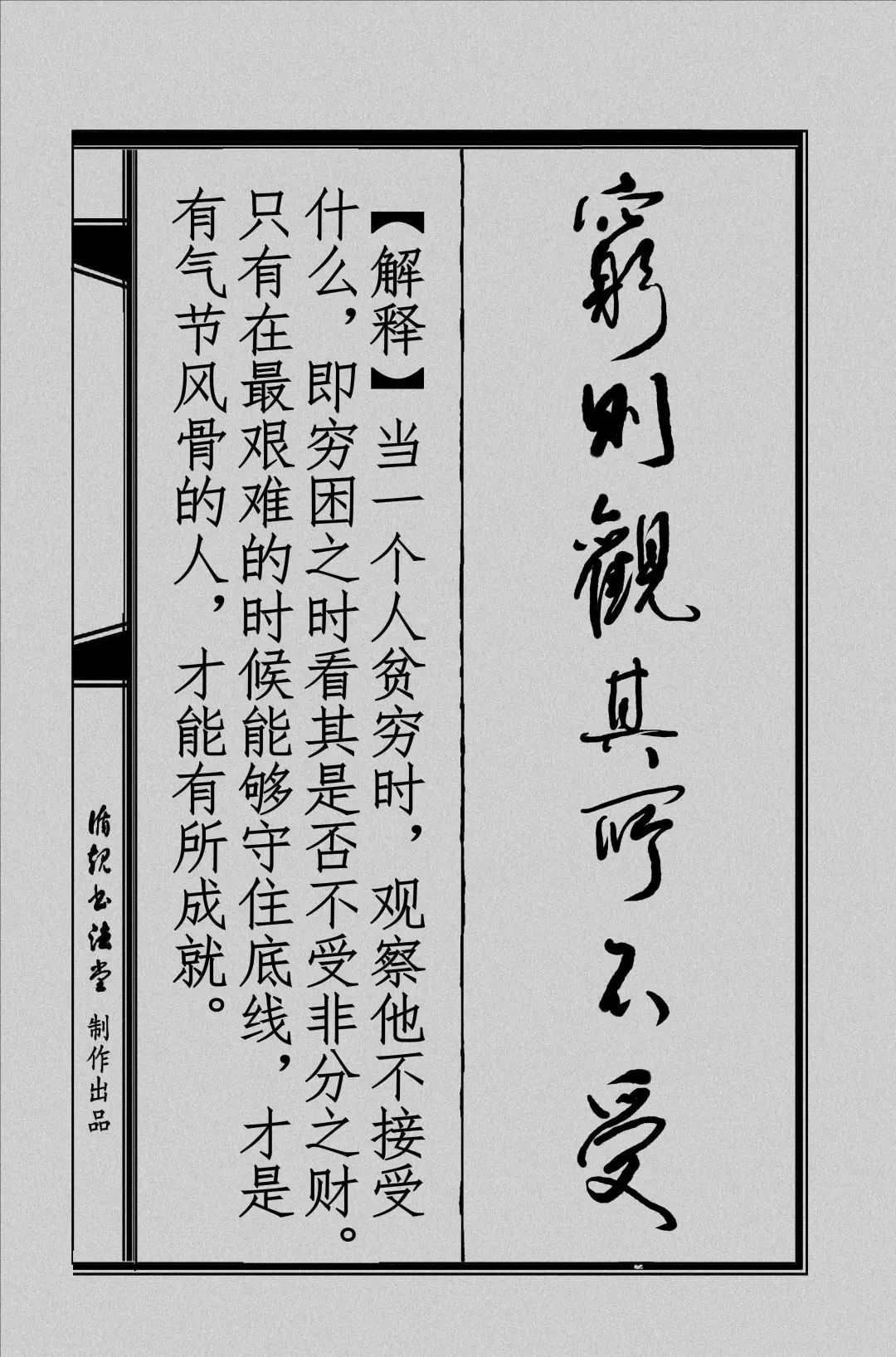 当一个人贫穷时,观察他不接受什么,即穷困之时看其是否不受非分之财。只有在最艰难的时候能够守住底线,才是有气节风骨的人,才能有所成就。