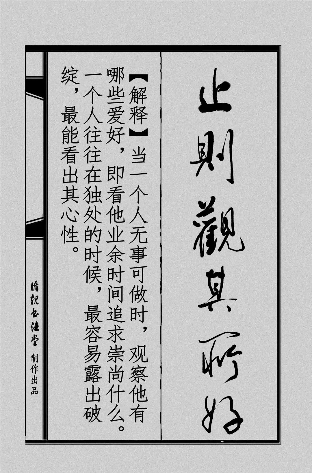 当一个人无事可做时,观察他有哪些爱好,即看他业余时间追求崇尚什么。一个人往往在独处的时候,最容易露出破绽,最能看出其心性。