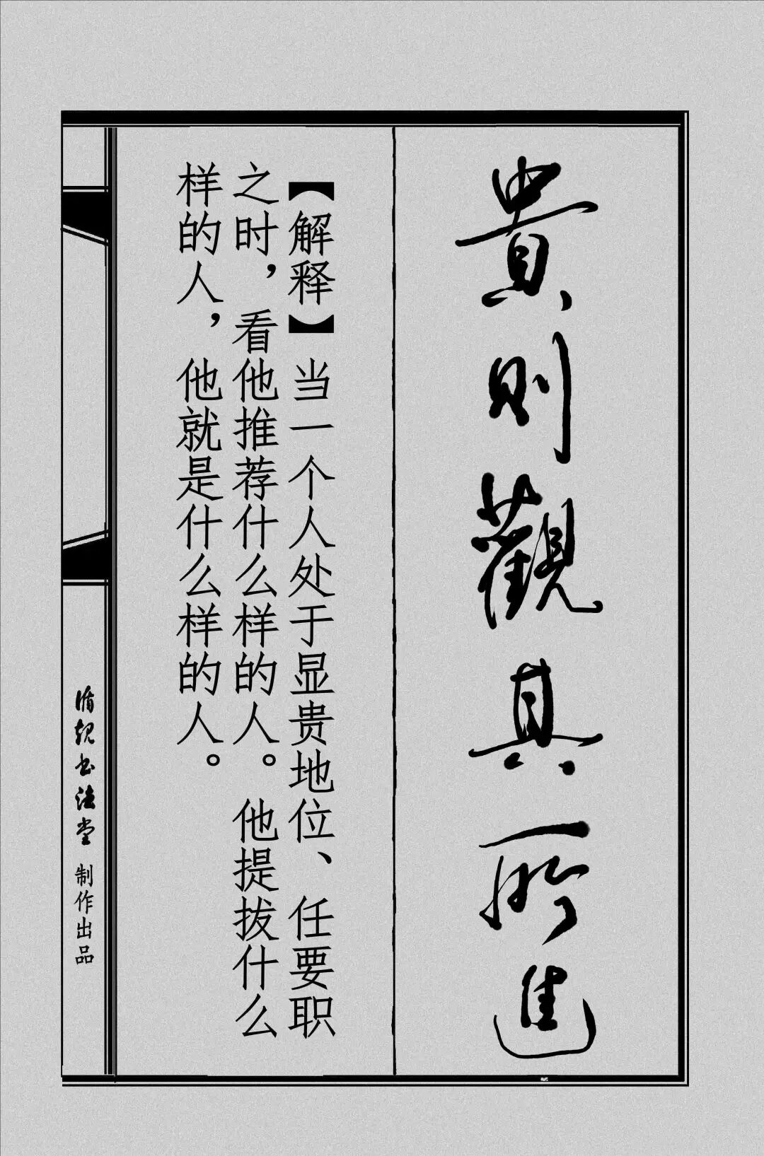 当一个人处于显贵地位、任要职之时,看他推荐什么样的人。他提拔什么样的人,他就是什么样的人。
