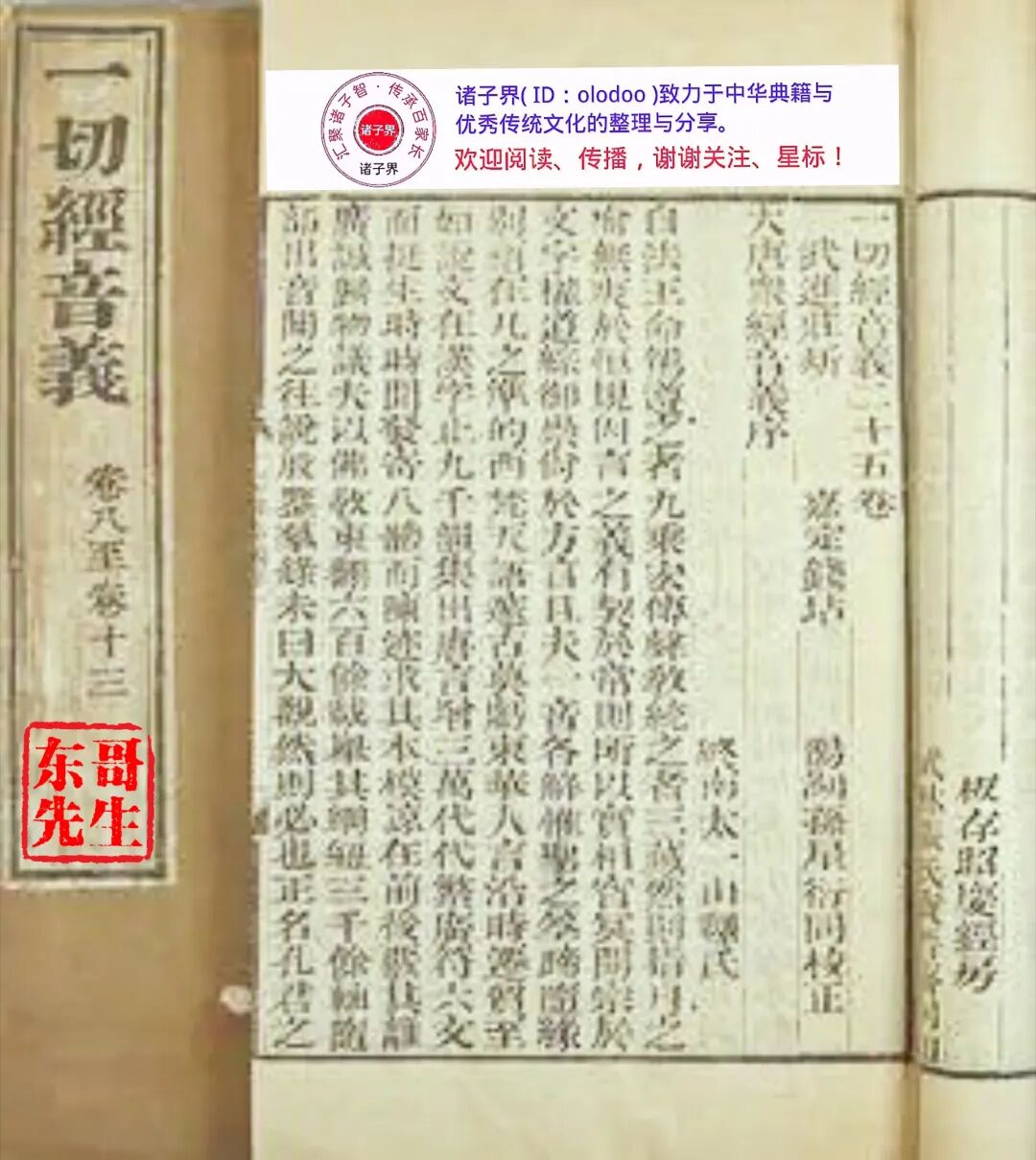 ♥唐代史崇玄等在唐玄宗初年奉敕撰编,该书卷首有唐玄宗御制“一切道经音义·序”和史崇玄等“妙门由起·序”。