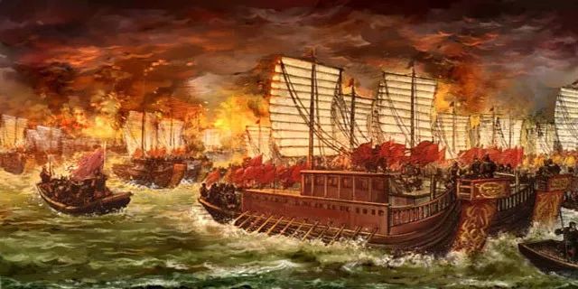 曹操消灭了袁绍统一北方,便南下进军南方。鲁肃献计孙权,联合刘备抗曹,任周瑜为大都督,程普为副都督,鲁肃为赞军校尉,领兵五万赤壁下寨抗曹。因北方士兵不习水战,曹操采用庞统之计将战船连在一起,孙刘联盟设反间计(蒋干中计)、苦肉计(周瑜打黄盖),并巧借东风,火烧连营,曹操败走华容道,逃回江陵。赤壁一战,奠定了三国鼎立的基础。