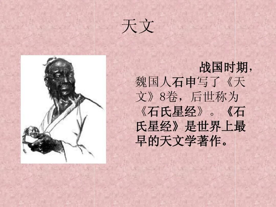 石申是战国中期魏国天文学、占星学家,著有《天文》八卷、《浑天图》等。
