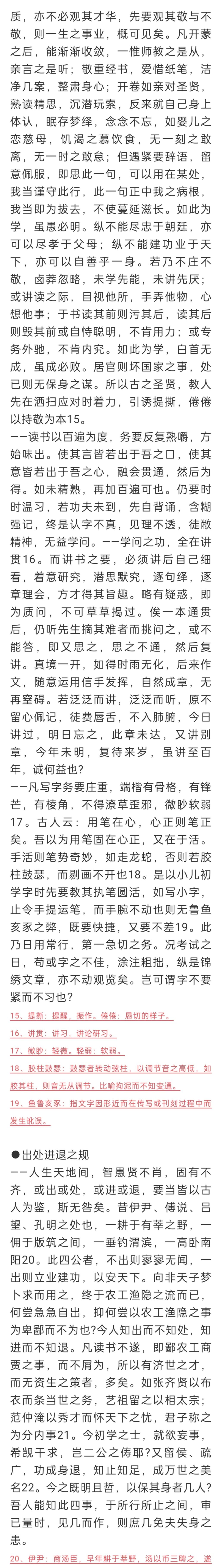 ⼈家⼦弟以读书为先,⽽读书以勤苦为本。吾族为⽗兄者,须延师取友,教⼦弟以诗书,令其晓通⽂义,不令放纵偷安。上,可以⽴⾝扬名;次,可以登科⼊仕;下,亦可以⽀持门户。若不教读书,惟营末利,甚⾄⼦弟⽬不知书,纵富,必为愚痴顽蠢之夫。贪,则⽢为⼈下⽽不辞矣。戒之!戒之!