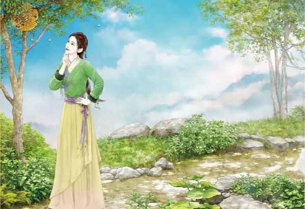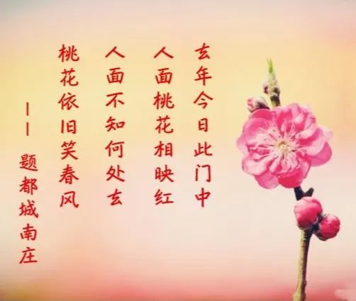 据说唐代书生崔护,某日在一片桃花林中看到了一间茅舍,他去敲门讨水喝,一位面若桃花的少女来开门…