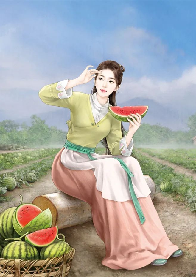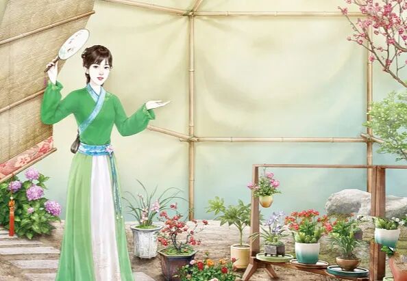 崔护借着喝水的契机和少女聊了起来,这才知道她叫绛娘,崔护看到她家书桌上的一些字画,有些居然带有少女的哀怨情绪,于是两个年轻人越聊越投机,各自心中暗生情愫……