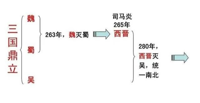 晋:司马昭逼魏帝封他为“晋公”,灭蜀后晋爵为晋王。后来他的儿子司马炎继承他的爵位,逼令魏帝退位,自立为皇帝,国号“晋”。