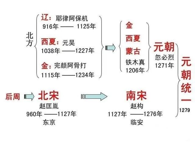 辽:辽原称“契丹”,改“辽”是因居于辽河上游之故。宋:后周恭帝继位后,命赵匡胤为归德节度使,归德军驻宋州(今河南商丘),赵匡胤为宋州节度使。故陈桥兵变后,发迹在宋州,国号曰“宋”。