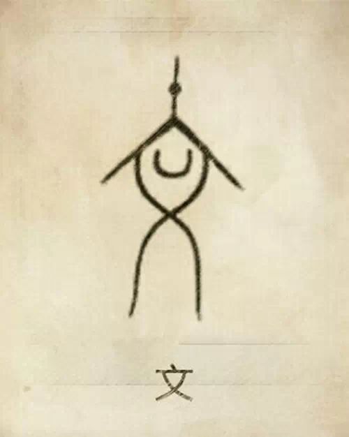 梁姓图腾,梁姓是大山槫木纪历图腾由水、刃、木(槫木)组成,以刀(辛)刻木为纪历方法。