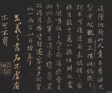 唐太宗李世民酷爱羲之书法,在得到《兰亭序》真迹后,曾命当朝书法名家褚遂良、欧阳询以及弘文馆拓书人冯承素等勾摹数本,分赐臣下,以广布扬。