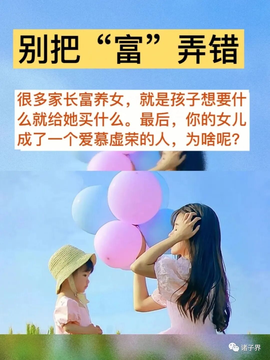 从另一个角度来说,除了给予较好的物质条件外,更需要开阔女孩的视野与见识。富也是“丰富”的意思。懂得美,懂得欣赏,懂得辨别,也就懂得了自我保护,而不会被外界的种种所诱惑。