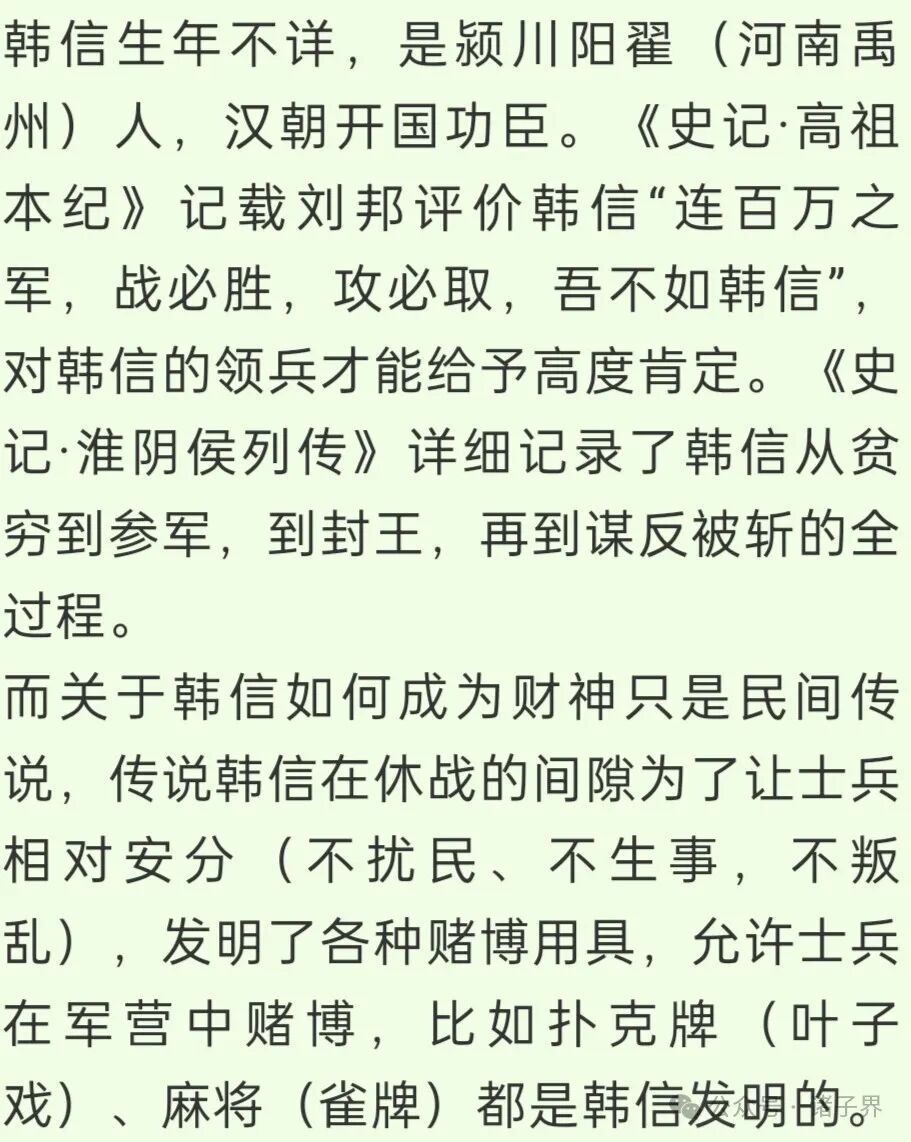 (详情请▶️象棋、麻将的由来、扑克牌...都和韩信有关)