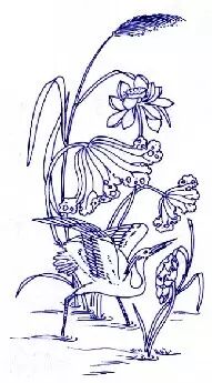 鹭,活动于江湖边或水田沼泽,常见有白鹭、苍鹭等。「鹭」与「路」同音,「莲」与「连」同音。芦苇之「芦」与「路」谐间。芦苇生长,常是棵棵连成一片,故谐音「连科」取意。旧时科举考试,连续考中谓之「连科」。鹭与荷花、芦苇组成的图称「一路连科」,寓意应试求连、捷,仕途顺遂。又以一只鹭与蝙蝠、寿星组成的图案叫「一路福星」,祝愿远行的人此去幸运。