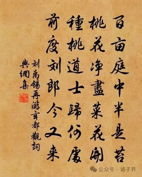 诗曰:“百亩庭中半是苔,桃花净尽菜花开。种桃道士归何处?前度刘郎今独来。”