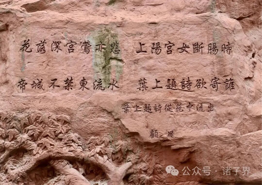 顾况在洛,乘间与三诗友游于苑中①,坐流水上,得大梧叶题诗上曰:“一入深宫里,年年不见春。聊题一片叶,寄与有情人。”