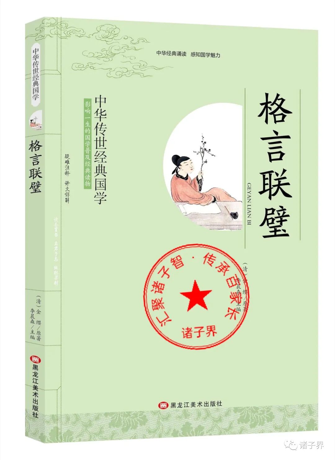 ●《格言联璧》惠吉类开卷有益,作善降祥。【译文】:读书有好处,作善得吉祥。欢迎关注诸子界,汇聚诸子智,传承百家长。崇德效山,藏器学海。群居守口,独坐防心。【译文】:修养自身的德性要效法高山,内心宽广要像海一般辽阔。与人在一起要谨慎说话,自己独处要防胡思乱想。以镜自照见开容,