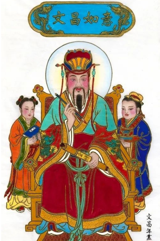 在中国的许多道观中都供奉着文昌帝君,道教对这位神仙的接纳是在公元6世纪左右。文昌帝君不停地转世,为民造福,负责人们的学习和考试。14世纪以后,中国的许多学校里都供奉文昌帝君。从中可以看出,文昌帝君虽然是道教的神,但他又有浓厚的儒家色彩。文昌帝君,又称更生永命天尊、梓潼帝君、雷应帝君、七曲灵应天尊、保德宏仁大帝、宝光纯一天尊,全称“九天定元保生扶教开化主宰长乐永佑灵应大帝”。是中国民间和道教尊奉的掌管士人功名禄位之神。志心皈命礼。不骄帝境。玉真庆宫。现九十八化之行藏。显亿千万种之神异。飞鸾开化于在在,如意救劫以生生。至孝至仁,功存乎儒道释教。不骄不乐,职尽乎天地水官。功德难量。威灵莫测。大悲大愿。大圣大慈。九天辅元。开化主宰。司禄职贡举真君。七曲灵应,保德弘仁大帝。谈经演教。消劫行化。更生永命天尊。
