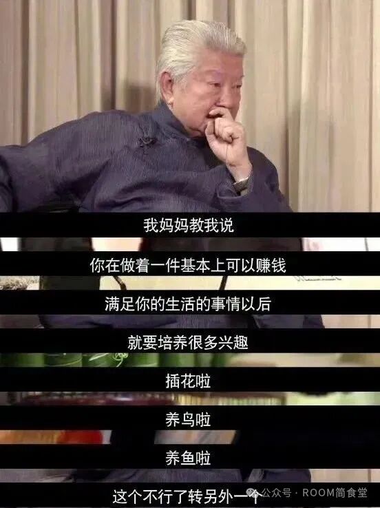 蔡澜在被人采访的时候被问及如何面对生活中负面的部分,比如烦恼、无奈等等。他说有一种办法,自得其乐。怎么自得其乐呢?他说做学问。做学问并不是什么高深的学问,就是种花,养鱼,养鸟…… 简简单单的乐趣都是学问。做到忘我的程度,烦恼就消失了。