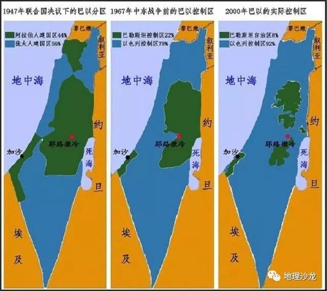1947年至2000年巴以实际控制区变化图