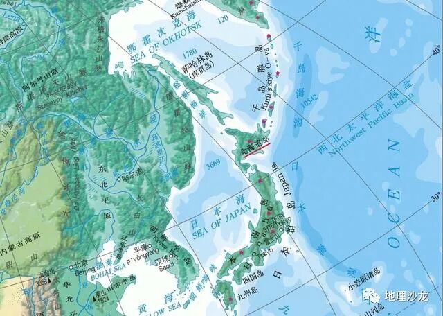 从北海道的地理位置来看,在北海道南部隔宽约24至40千米的津轻海峡与本州岛相望,而在西北部隔最窄约为42千米的宗谷海峡与俄罗斯的萨哈林岛相望,而俄罗斯的萨哈林岛通过狭长的鞑靼海峡与亚欧大陆相望,最窄处仅为7.3千米。所以,北海道实际上距离亚欧大陆是很近的,只要经过两个狭窄的海峡就可以了,北海道地区的原住民阿伊努人,就是生活在库页岛、北海道、千岛群岛和勘察加一带。