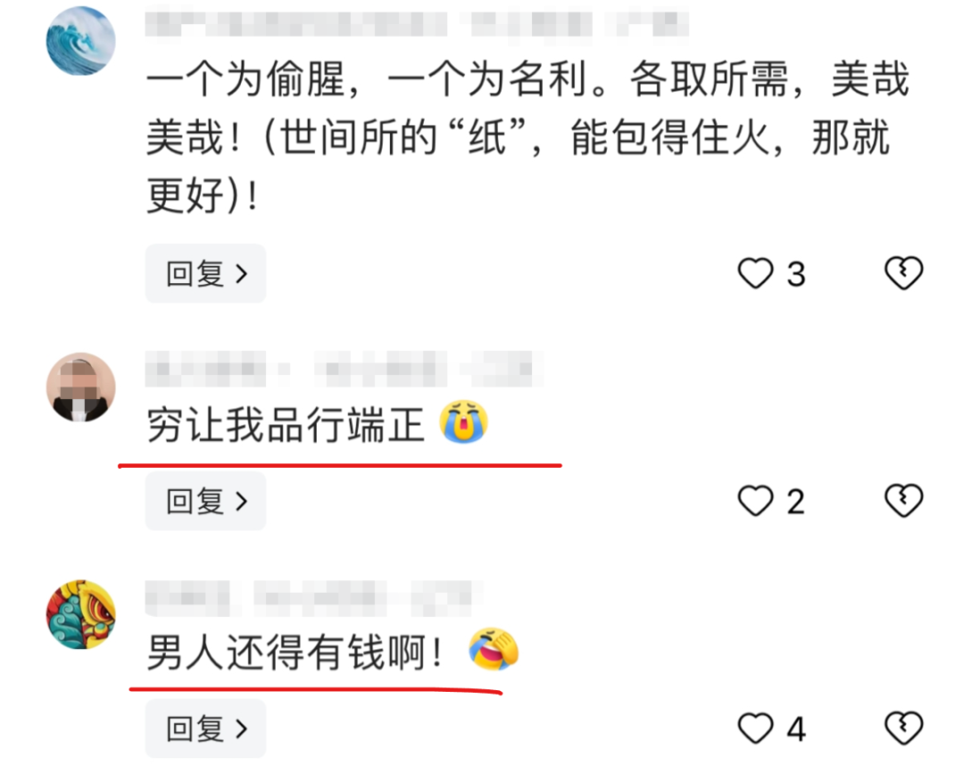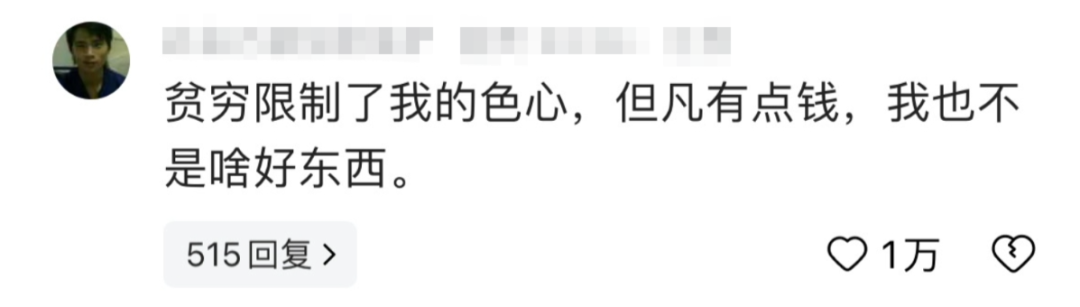 ➤ 贫穷限制了我的色心,但凡有点钱,我也不是啥好东西