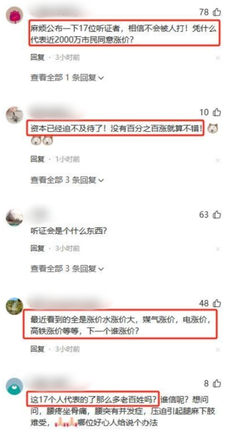 ➤ 水费,电费是民生开支的大头,如果连这些基础设施都要大幅涨价,我们受不了