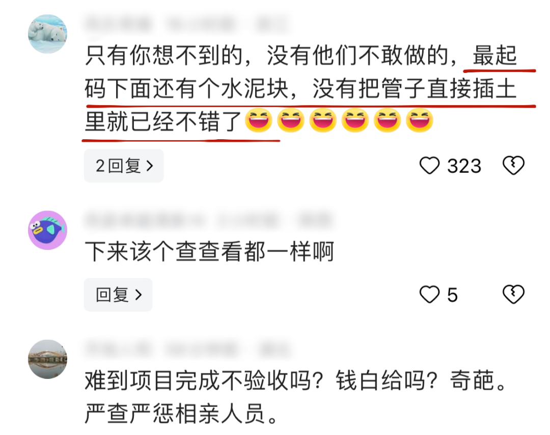 ➤ 最起码下面还有个水泥块,没有把管子直接插土里就已经很不错了