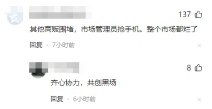 & 有网友表示其他商贩一起围堵,市场管理员帮助抢手机,整个市场都烂了,没有人站在消费者这边,他们的合法权利得不到保障