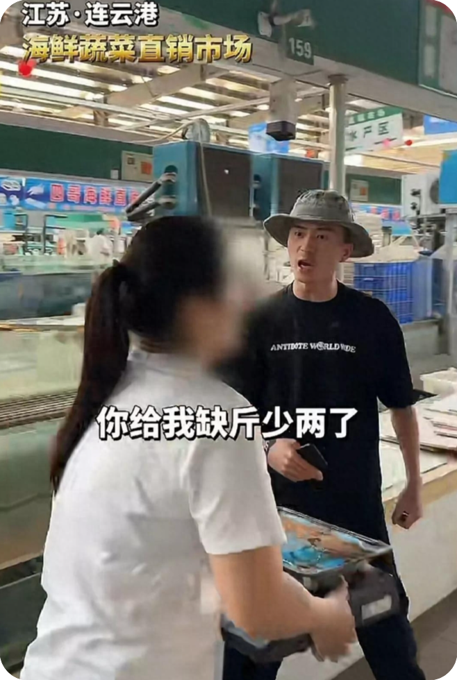 购买一商户海产品缺斤少两,