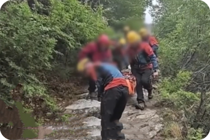 将受伤的大学生转移到山脚下,