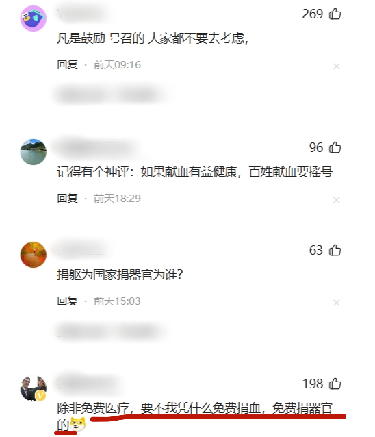 & 网友表示除非实现免费医疗,要不然凭什么免费捐血和捐赠器官