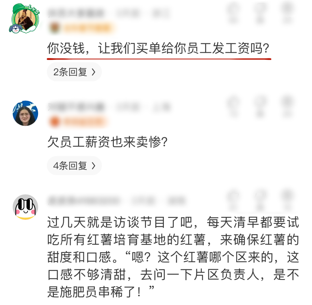 & 有网友认为你欠你员工的债,凭什么让大众来给你还?8.5一斤的红薯?你卖了能飞升成仙吗?