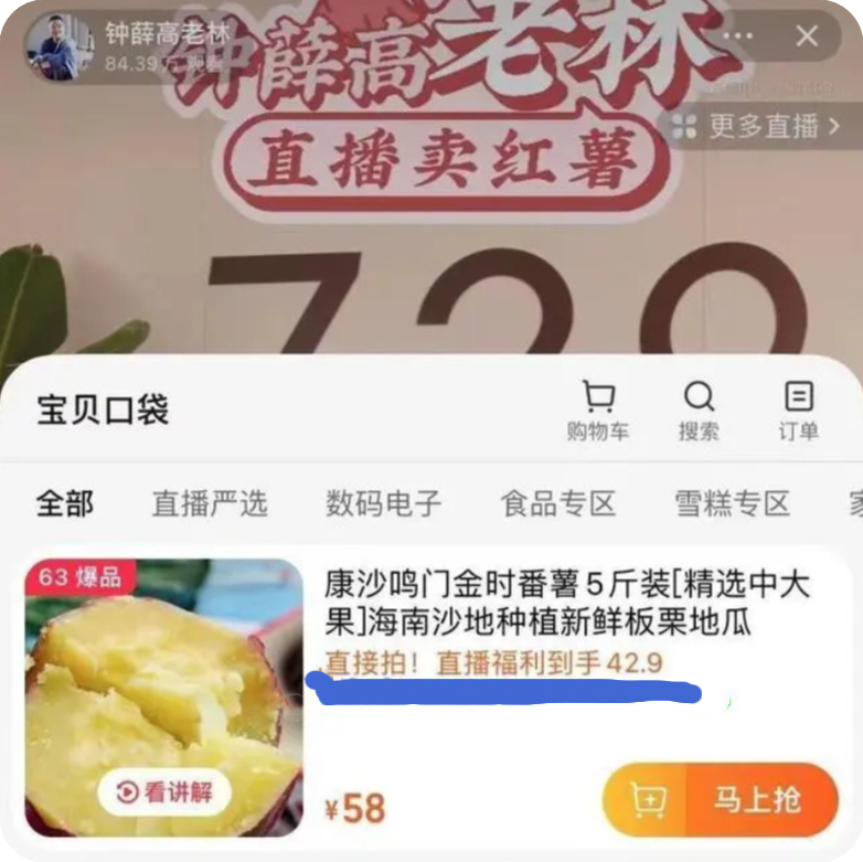 直播间里的42.9元5斤红薯,