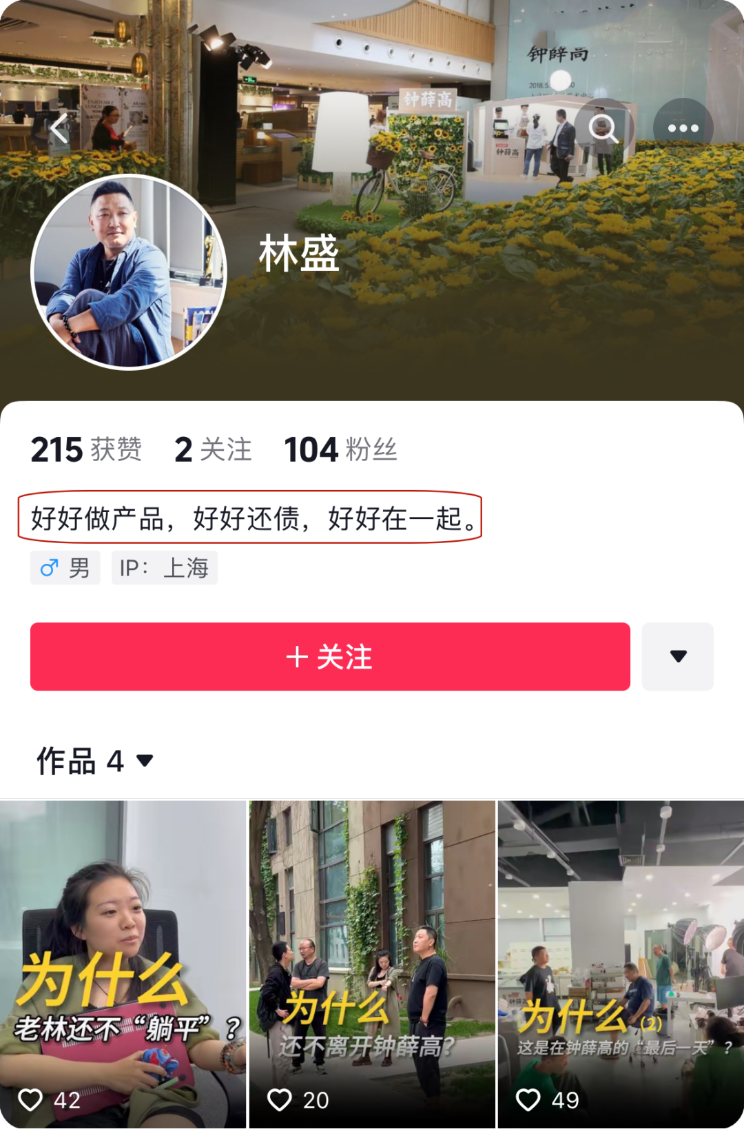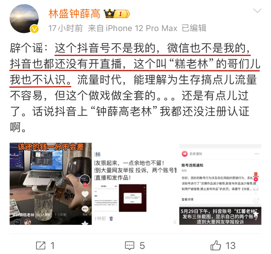 表示某音流传的“钟薛高老林”账号