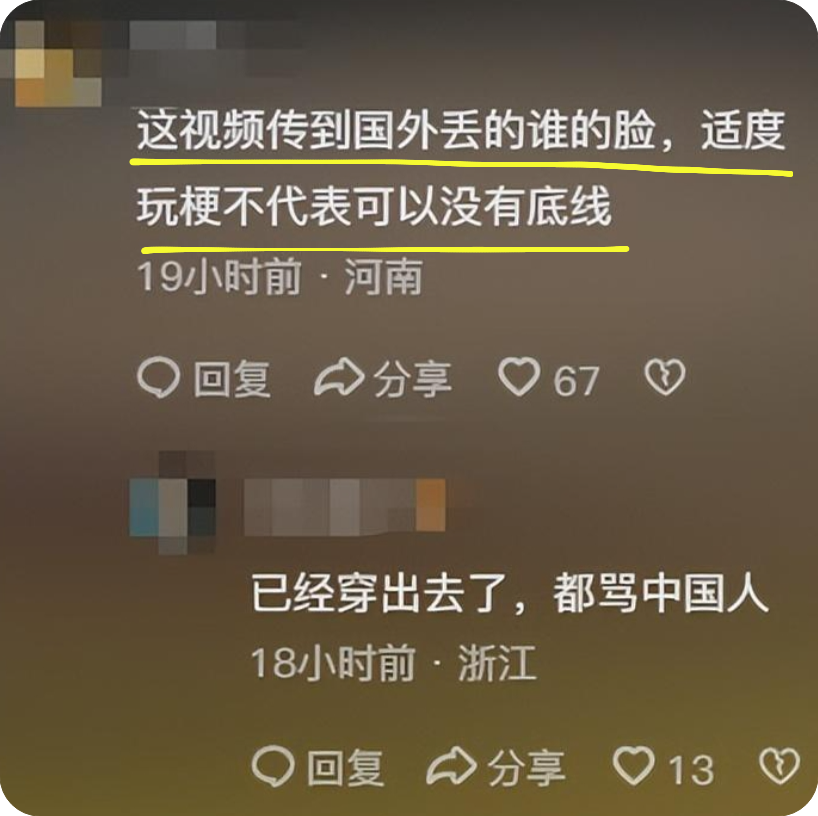 & 就像很多人说的那样,玩梗也要适度,不能失去底线,如果这视频传到国外,又会引起怎样的舆论呢?