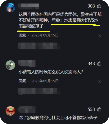 & 更有网友认为在国内这两个团体算是优势团体,号称:地表最强大妈VS地表最强熊孩子