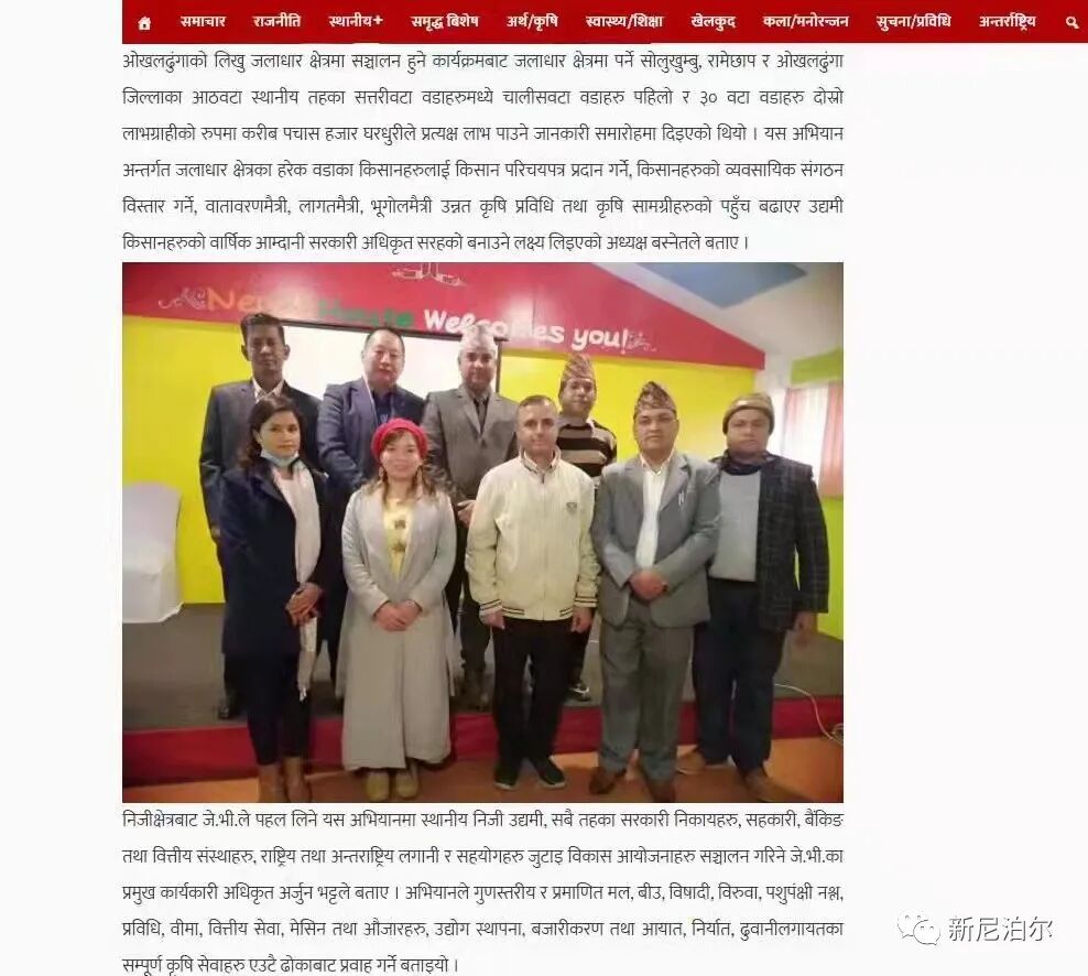 该公司的宣传材料说,公司在尼泊尔深耕农业领域七八年,熟悉尼市场及政治环境,不断出口农业物资、给当地农民提供技术支持;与此同时,帮助尼泊尔农业从常规传统农业,转换升级到绿色有机农业。