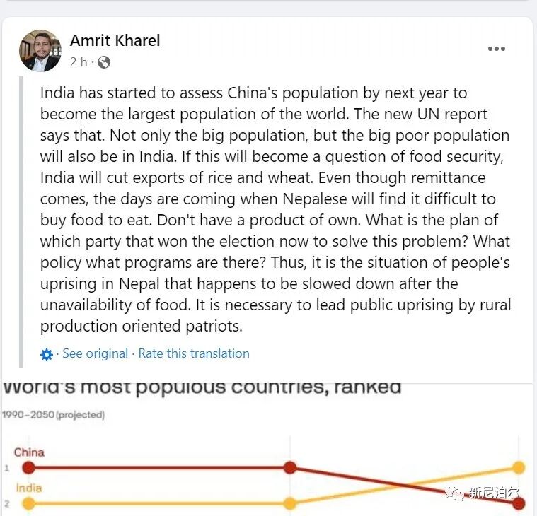 已有尼泊尔网友对此表达了严重的关切:一旦印度发生饥荒,禁止粮食出口,尼泊尔将面临几千万人口的吃饭问题!