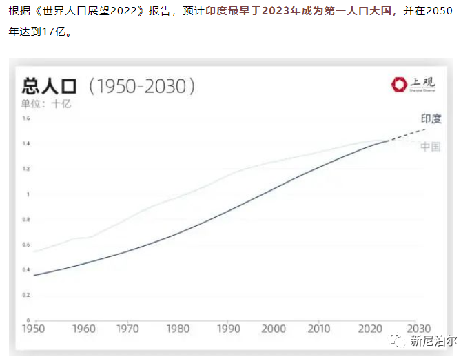 《世界人口展望2022》报告近日发布,预计印度最早于2023年超越中国,成为全球第一人口大国,并在2050年达到17亿。