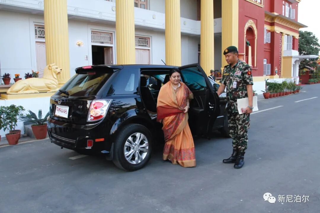2019年,时任女总统班达里夫人在总统府内乘坐电动车。大量领导人使用电动车,促进了电动车在尼泊尔的普及
