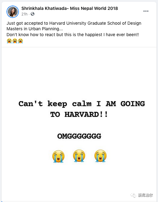 今年3月,26岁的施瑞卡拉·卡蒂瓦达(Shrinkhala Khatiwada)获得了美国哈佛大学设计研究生院的入学资格,将在那里攻读城镇规划方向的硕士学位。