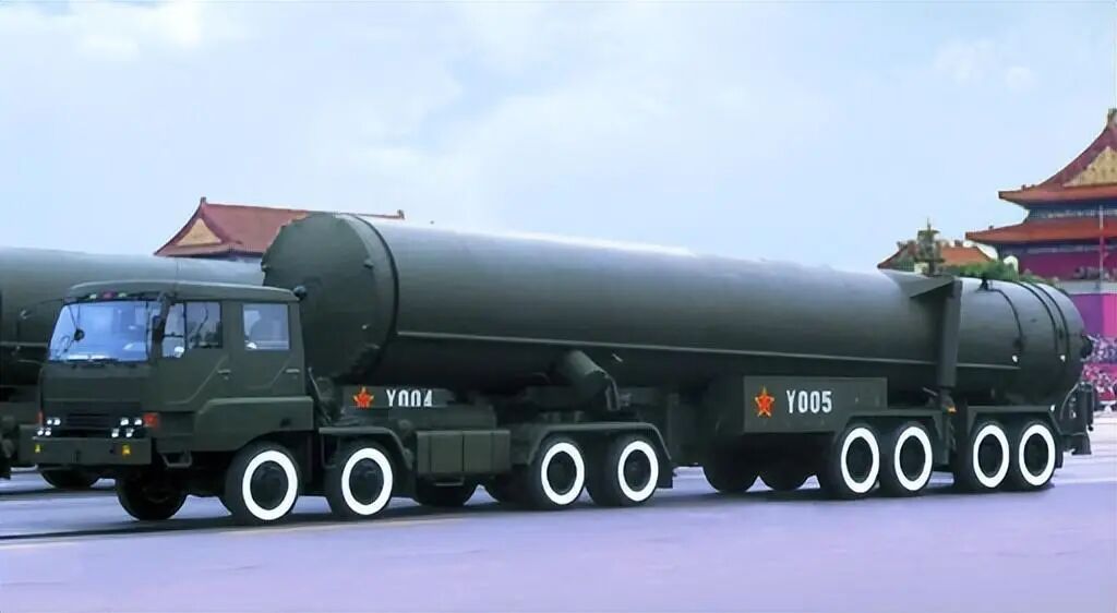 就比如中国东风-31型弹道导弹,在1999年的国庆阅兵上首次亮相,这款导弹的最大射程高达1万公里。具备火力射程远、机动能力强、信息化程度高,具备核威慑与核反击作战能力。
