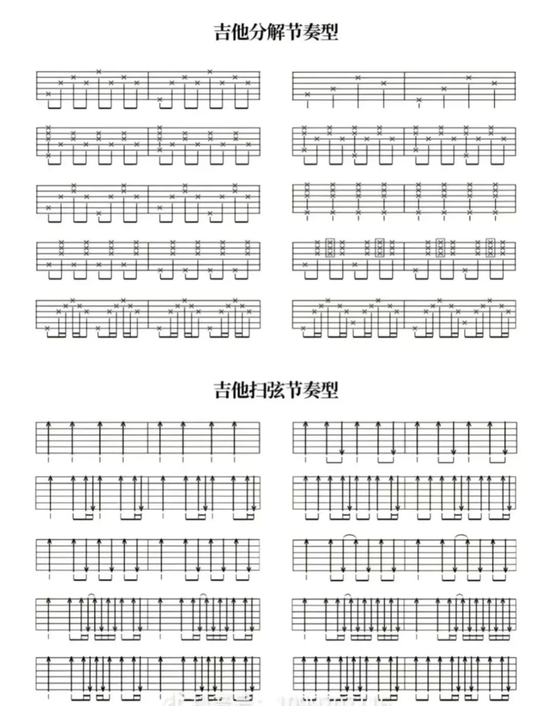 爬格子:从低音E弦开始,按照音阶顺序,每个音弹奏一次,然后换到下一根弦。这有助于训练手指的伸展和灵活性。