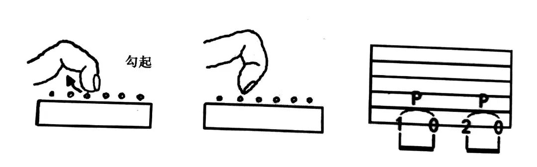 勾弦弹奏时需注意:左手手腕带动手指大关节发力,弹完后向外拉扯琴弦。