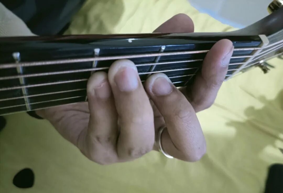 在按F和弦时,左手的姿势非常重要。首先,要确保左手的拇指放在吉他的背面,为手掌提供稳定的支撑。其次,食指应该尽量垂直于指板,以确保能够均匀地施加压力到所有需要按压的琴弦上。同时,其他手指也应该保持放松,不要过度用力,以免影响演奏的灵活性和准确性。