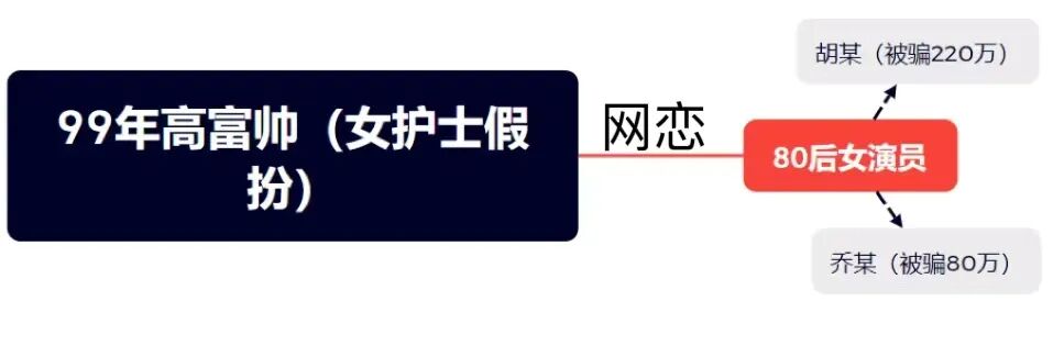 经公安机关调查,高富帅是一名女护士冒充,被关押在地下钱庄的事情也纯属是虚构,为的就是虚构事实操控女演员骗钱;