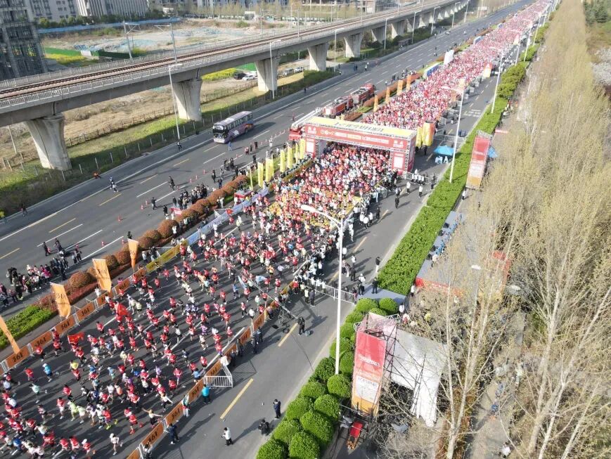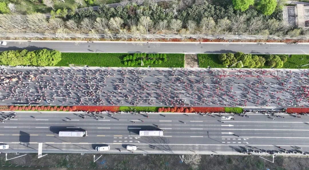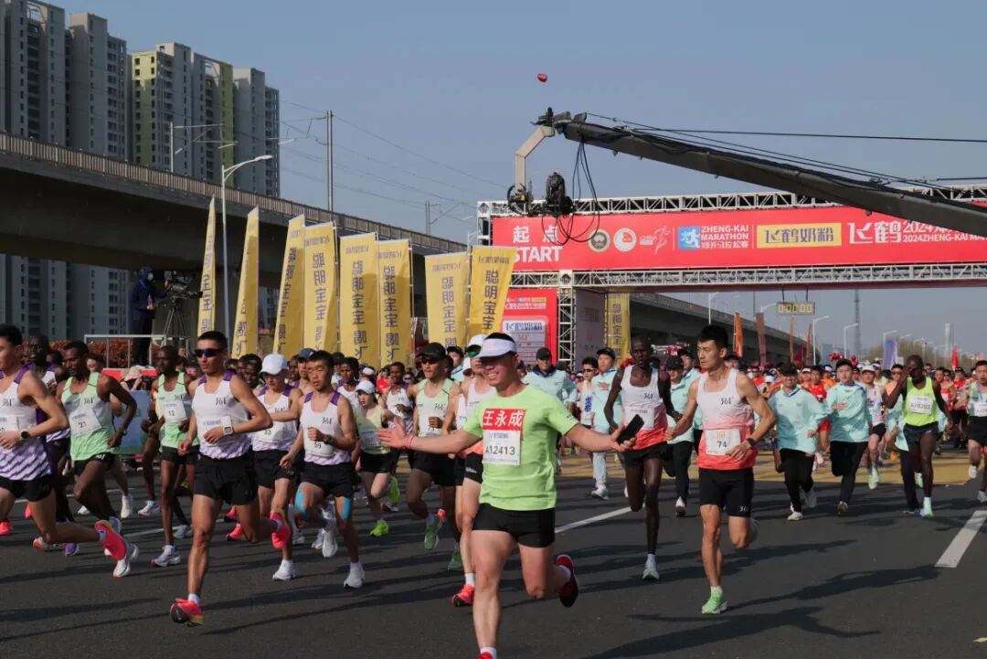 在枪声响起后,各个选手犹如离弦之箭往前奔去,沿着郑开大道前行,踏上了挑战自我的征程。